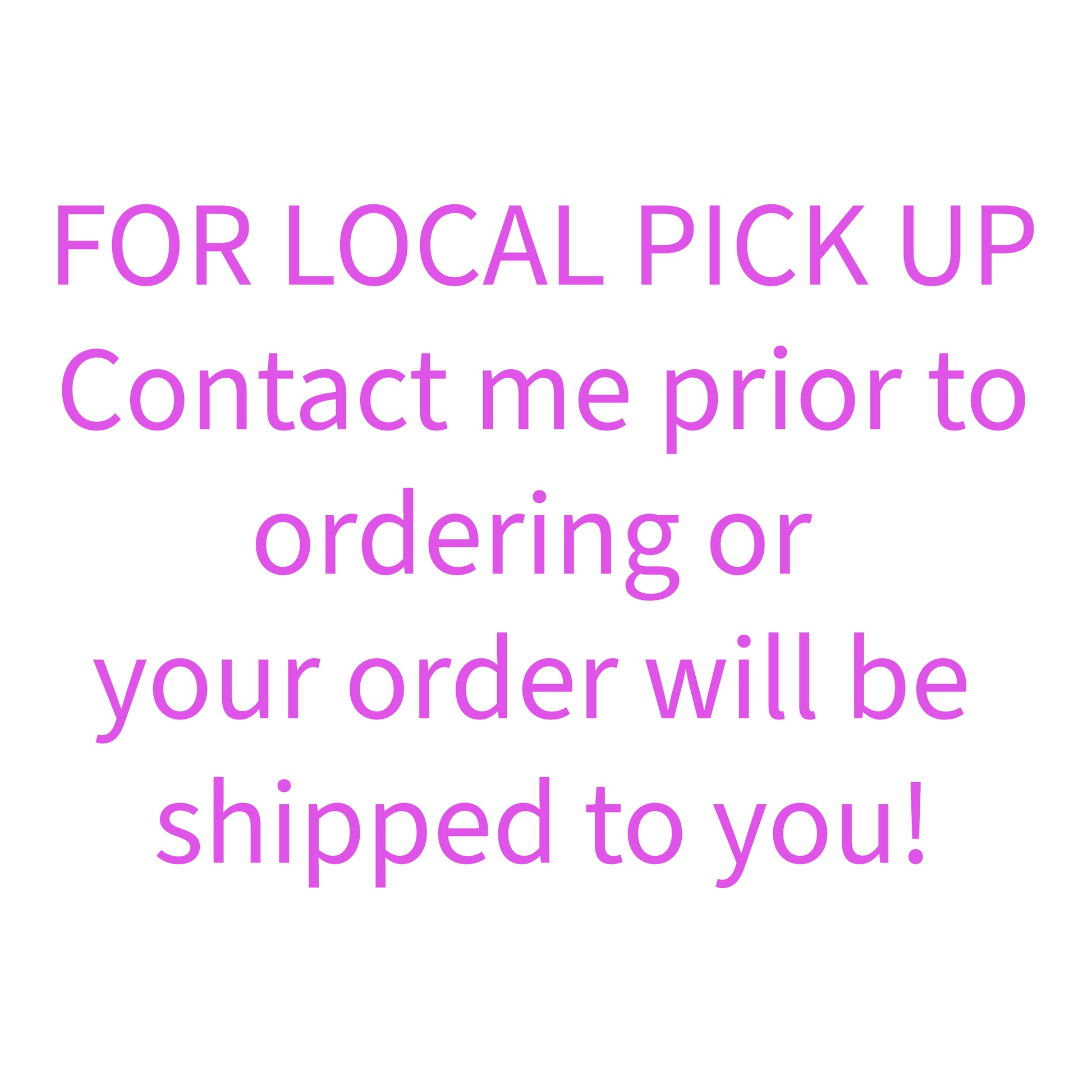 For Local pickup, please contact me prior to ordering so we can arrange a pickup location 😊